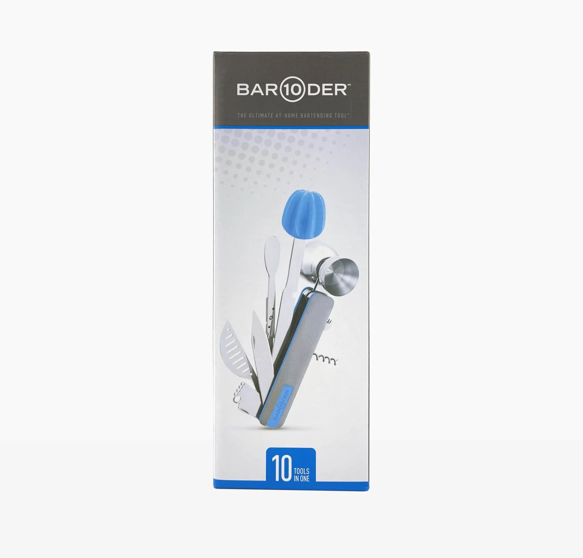 Bar10der. Your favourite cocktails are within arm’s reach. This 10-in-1 tool muddles, preps, stirs, zests, and much more to create a multitude of drinks. Collapsible and efficient, this is a mainstay of the on-the-go and home-bar kit.