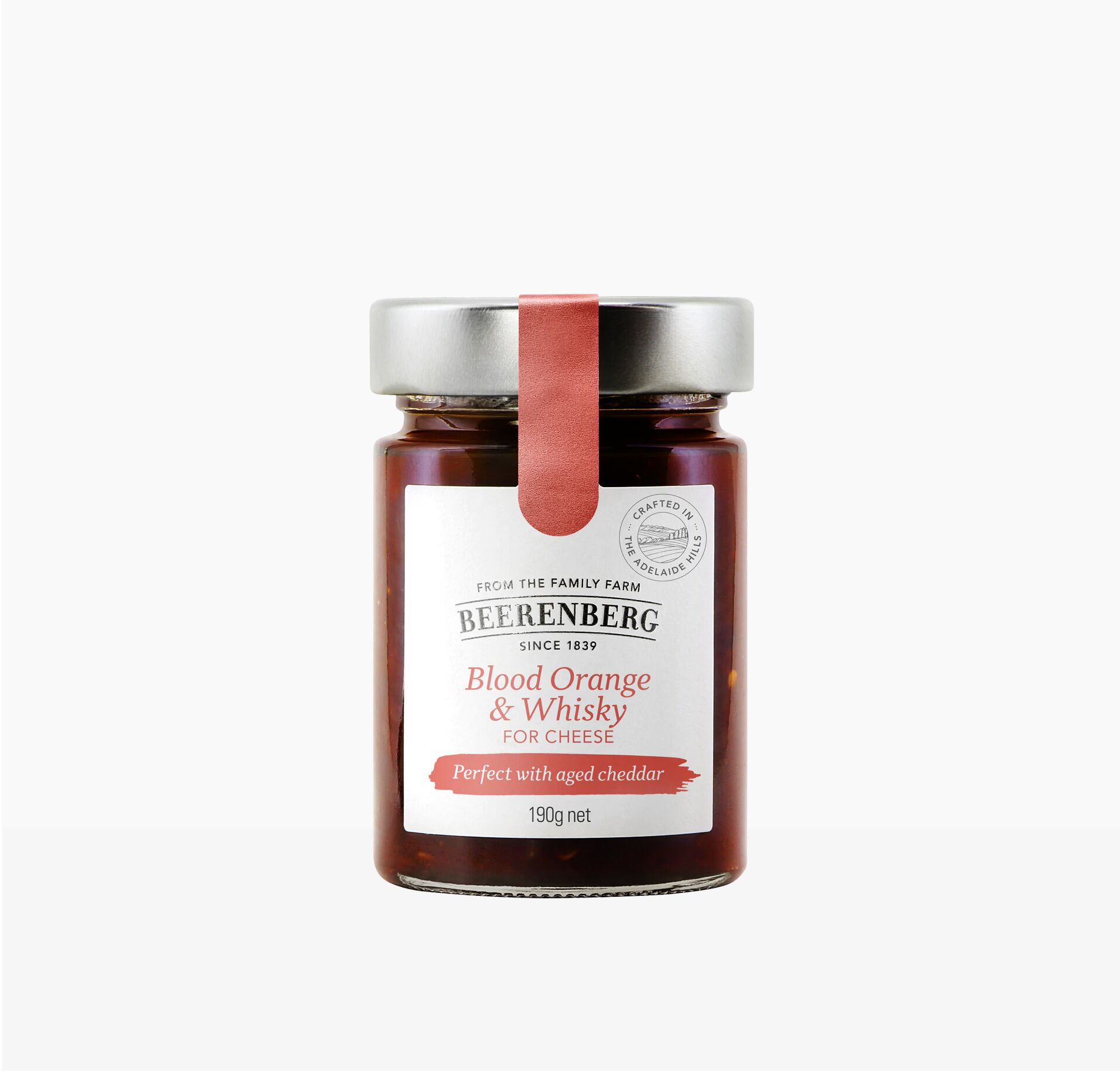 Beerenberg Blood Orange & Whisky for Cheese is a delicious pot of goodness, a must have for any cheeseboard. Perfectly paired with and aged cheddar.