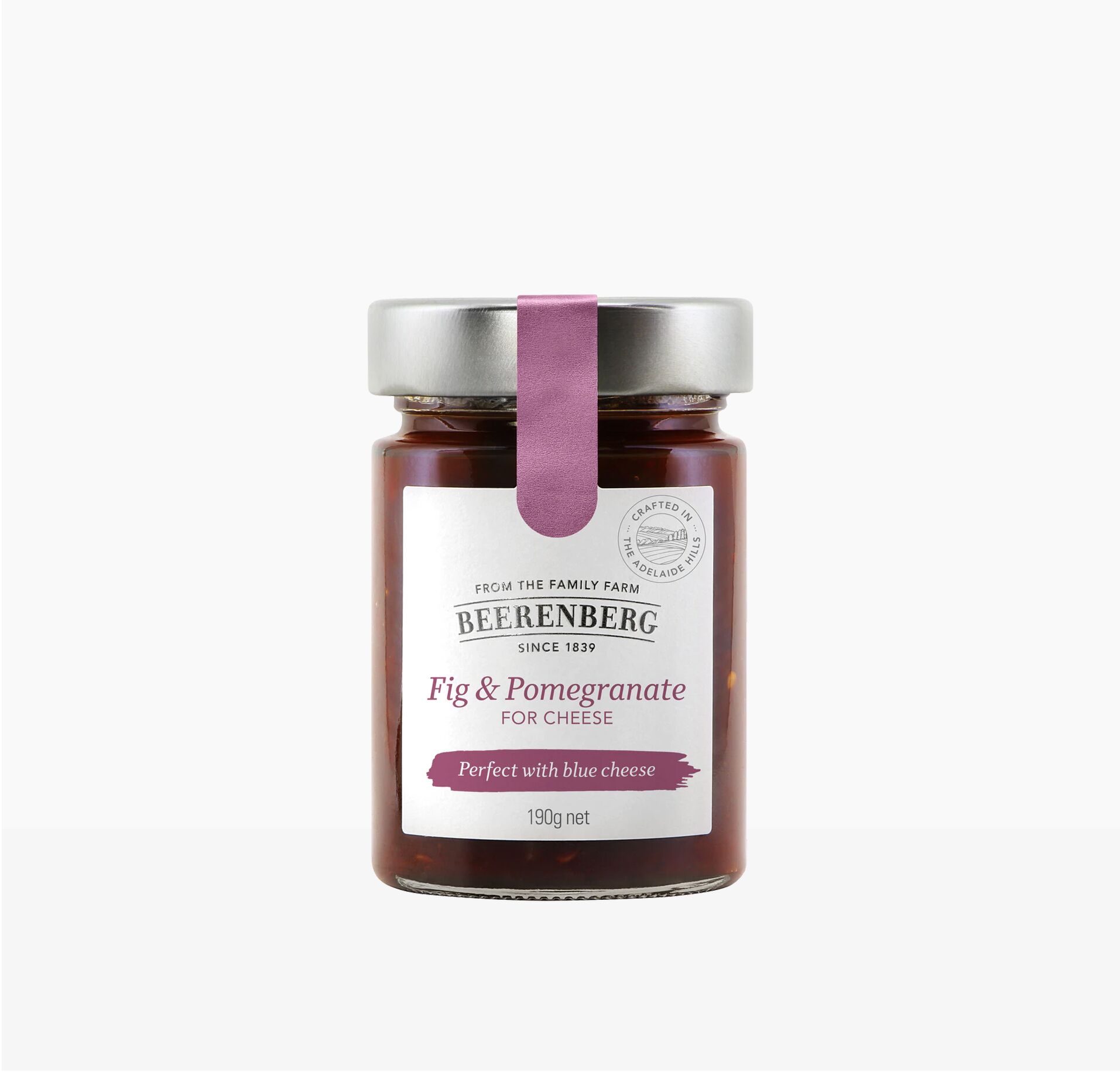 Beerenberg Fig & Pomegranate for Cheese is a delicious pot of goodness that is a must have for any cheeseboard. Perfectly paired with Blue Cheese.