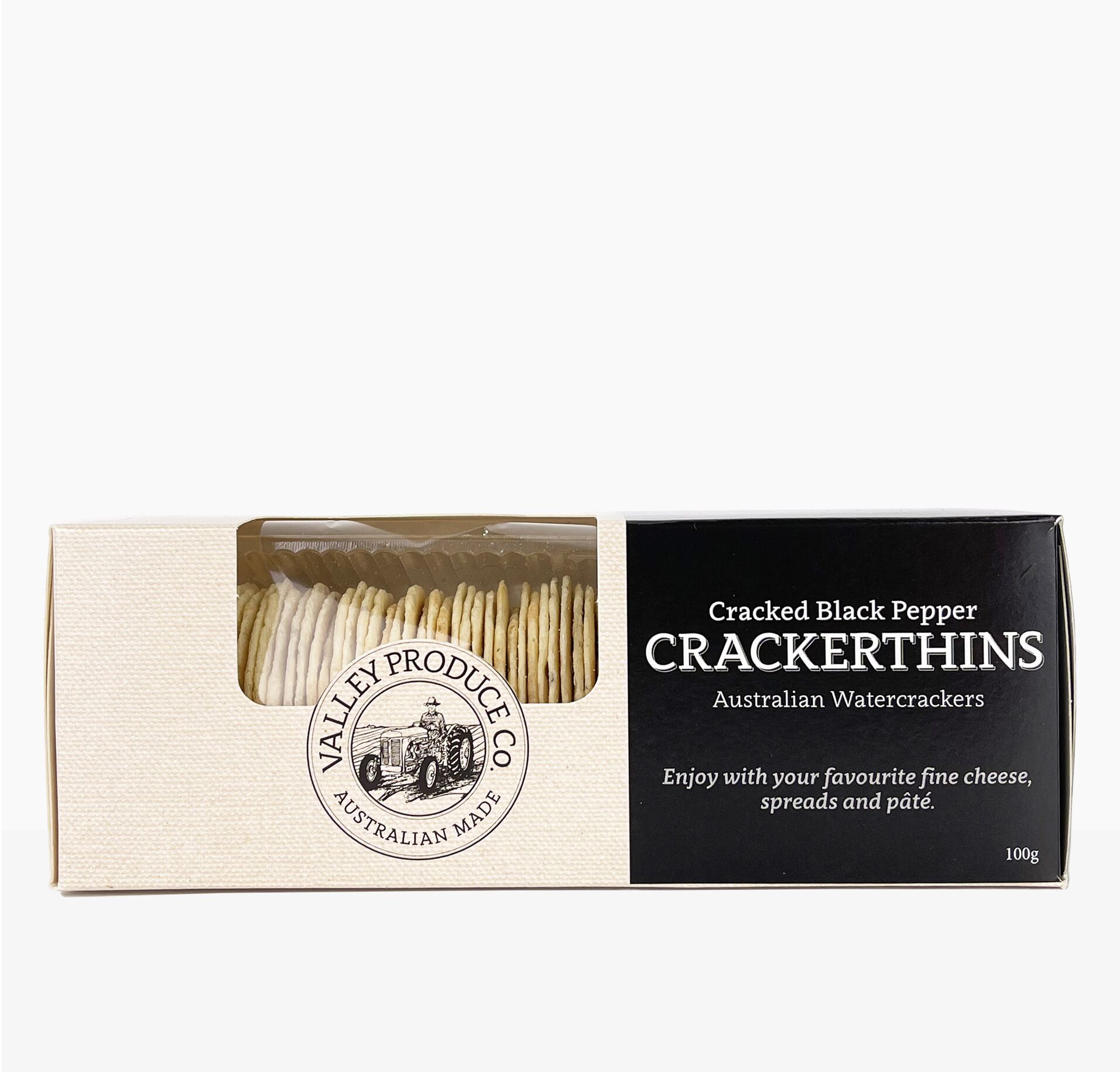 VPC Pepper Crackerthins 100g. Enjoy with your favourite fine cheese, spreads and pate.