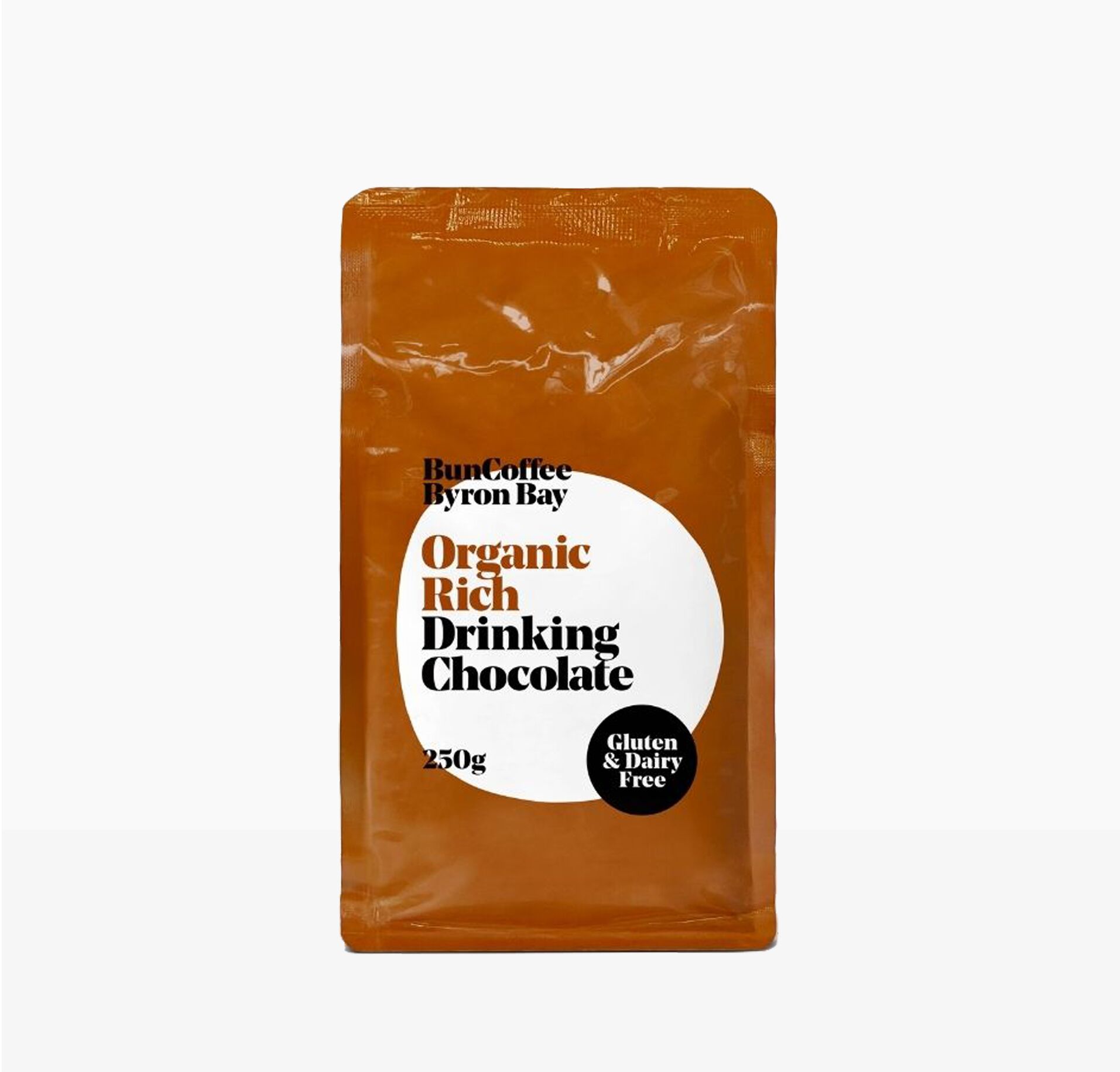 Bun Coffee Drinking Chocolate. A rich, smooth blend of organic cocoa beans and organic rapadura, a sugar prized for its caramel flavour and nutritional value. This drinking chocolate contains no fillers, no dairy, no gluten, no artificial flavours or artificial sweeteners. It’s just 100% delicious. 250g.