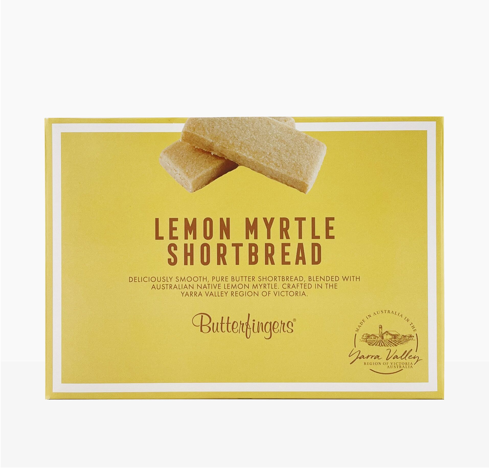 Butterfingers Lemon Myrtle Shortbread. Deliciously smooth, pure butter shortbread, blended with Australian native lemon myrtle.