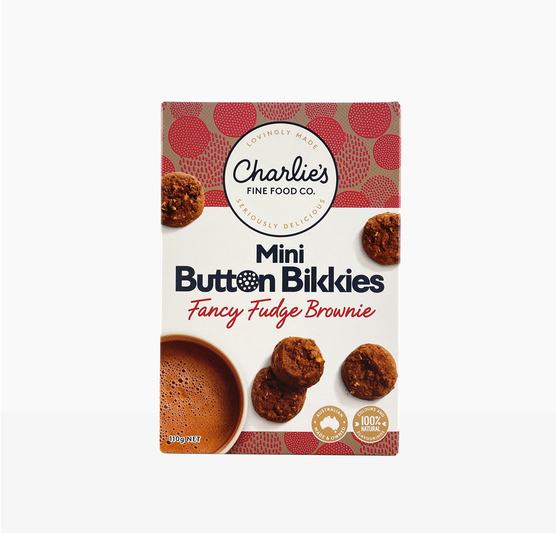 Charlie’s Fudge Brownie Button Bikkies are made with premium ingredients. No artificial colours or flavours. These Button Bikkies are seriously delicious.
