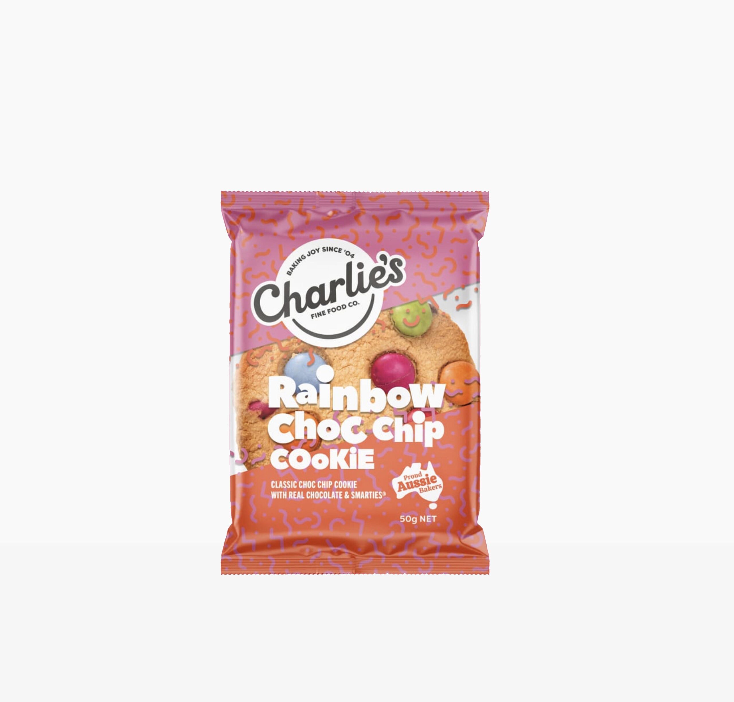 Classic Choc Chip Artisan Cookies with Couverture Chocolate and natural coloured Smarties, individually wrapped. 50g