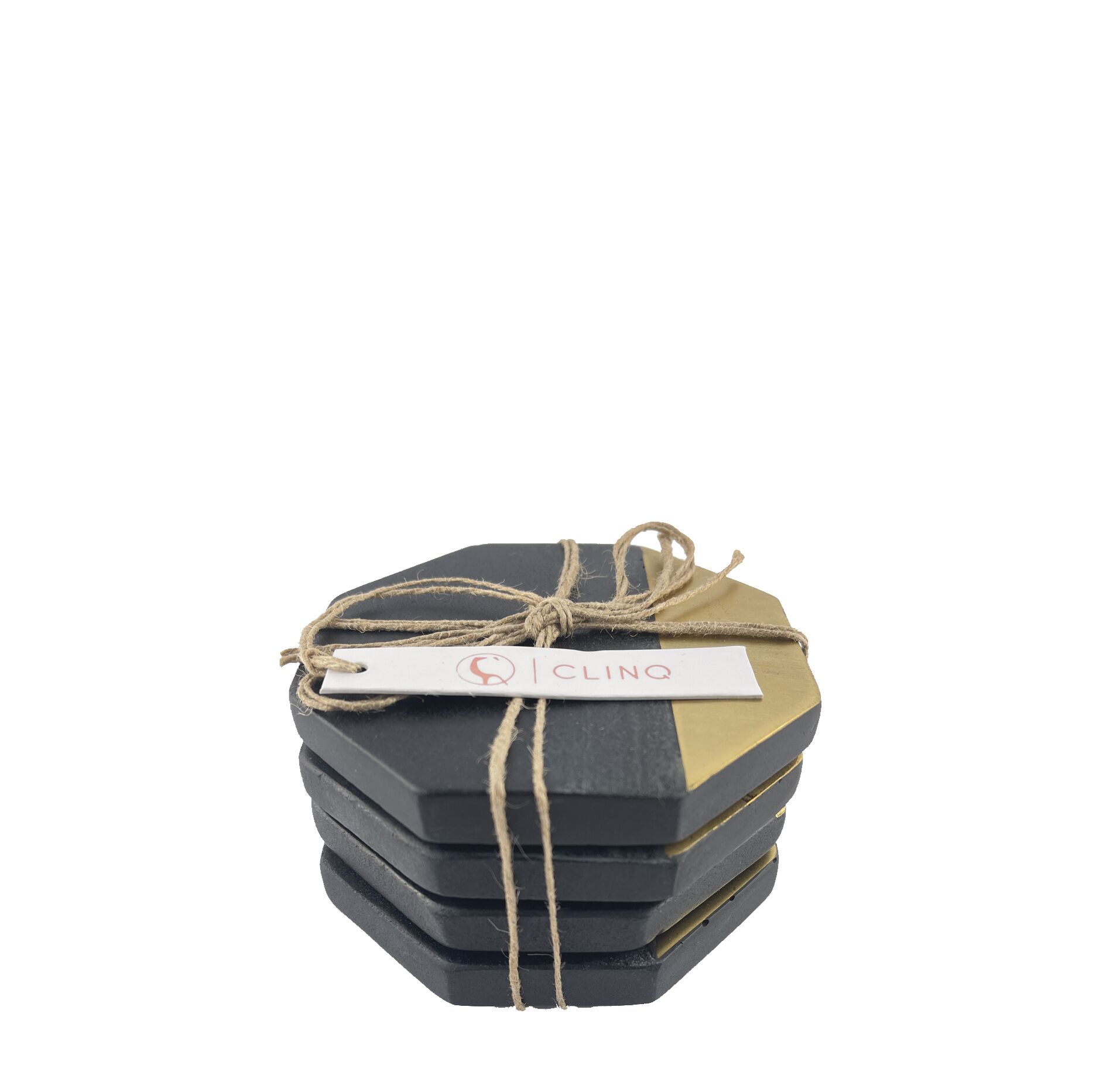 Clinq Brass & Black Hexagon Coasters. Show off your cocktail creations in style with these elegant Coasters. Set of 4.