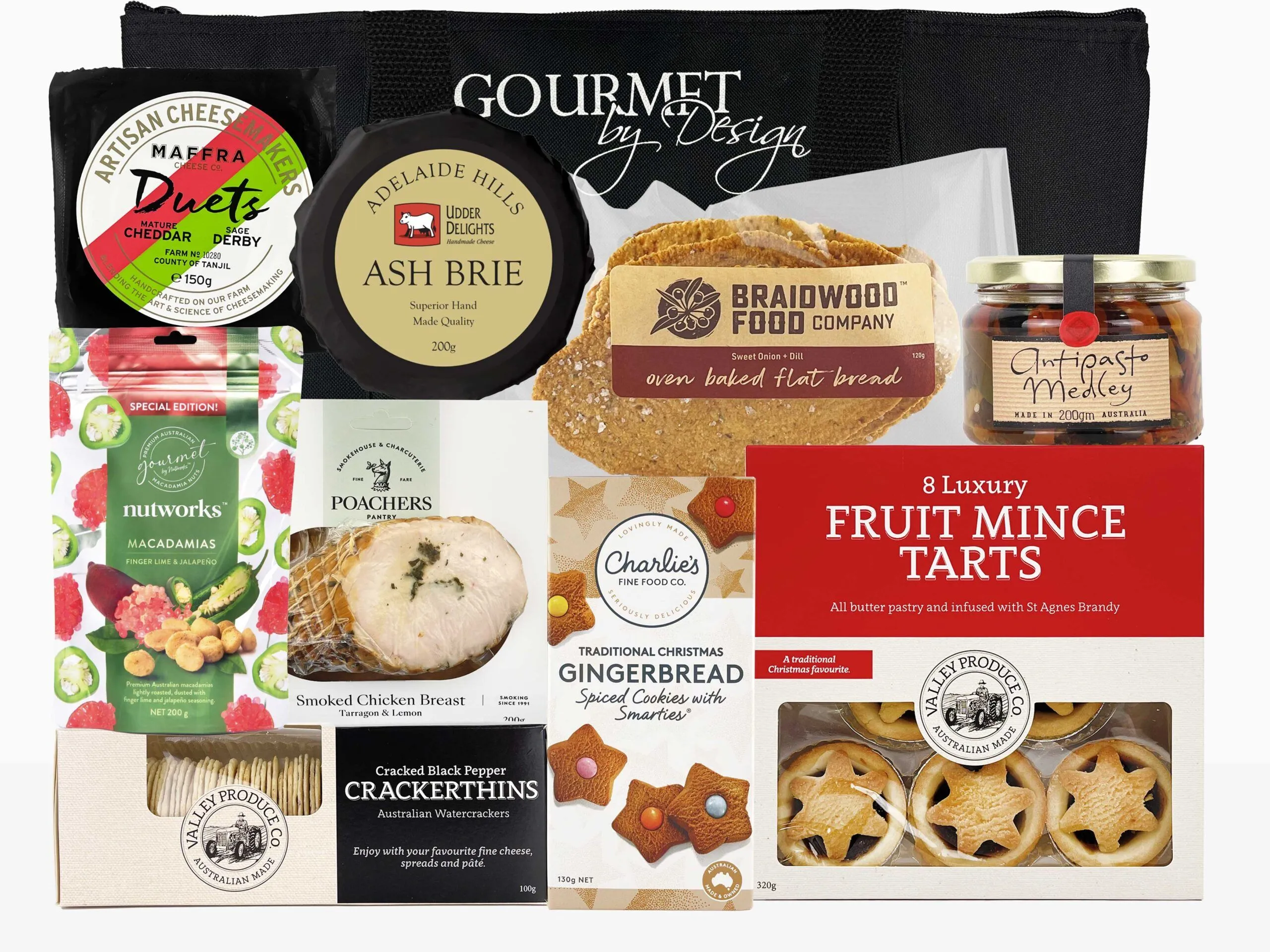 Celebrate Christmas with the Festive Gourmet Fresh Hamper, a refined balance of savoury delights and classic sweets. Smooth ash brie, rich cheddar cheese, and crisp flatbreads create a delicious base, while an antipasto medley and finger lime macadamias add freshness and depth. Smoked chicken breast provides a tender, premium highlight, perfect for festive entertaining. To finish, traditional gingerbread and buttery fruit mince tarts bring warmth and sweetness to the season. Ideal for sharing with family, gifting to colleagues, or surprising loved ones, this hamper captures the joy of Christmas through flavour, generosity, and thoughtful presentation.
