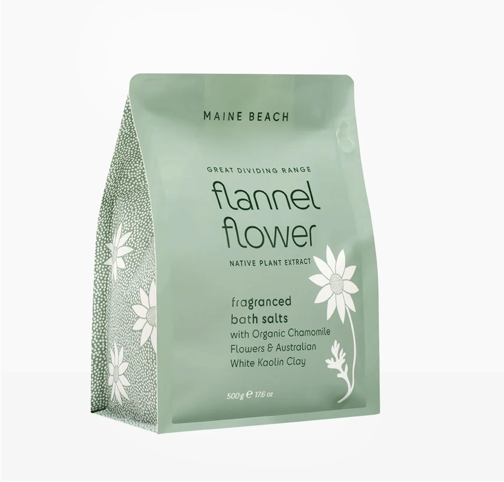 The Flannel Flower Bath Salts Pouch from Maine Beach is a convenient refill to keep your bath ritual uninterrupted. Infused with mineral-rich salts and the gentle aroma of Flannel Flower, it helps relax tired muscles while nourishing and softening skin. Each soak creates a calming, spa-like experience at home. Designed for sustainability, the refill pouch reduces packaging waste while maintaining luxury and comfort. Perfect for topping up your jar or gifting, it ensures your bathing ritual remains effortless, indulgent, and eco-conscious. Enjoy daily relaxation and skin nourishment with every use.