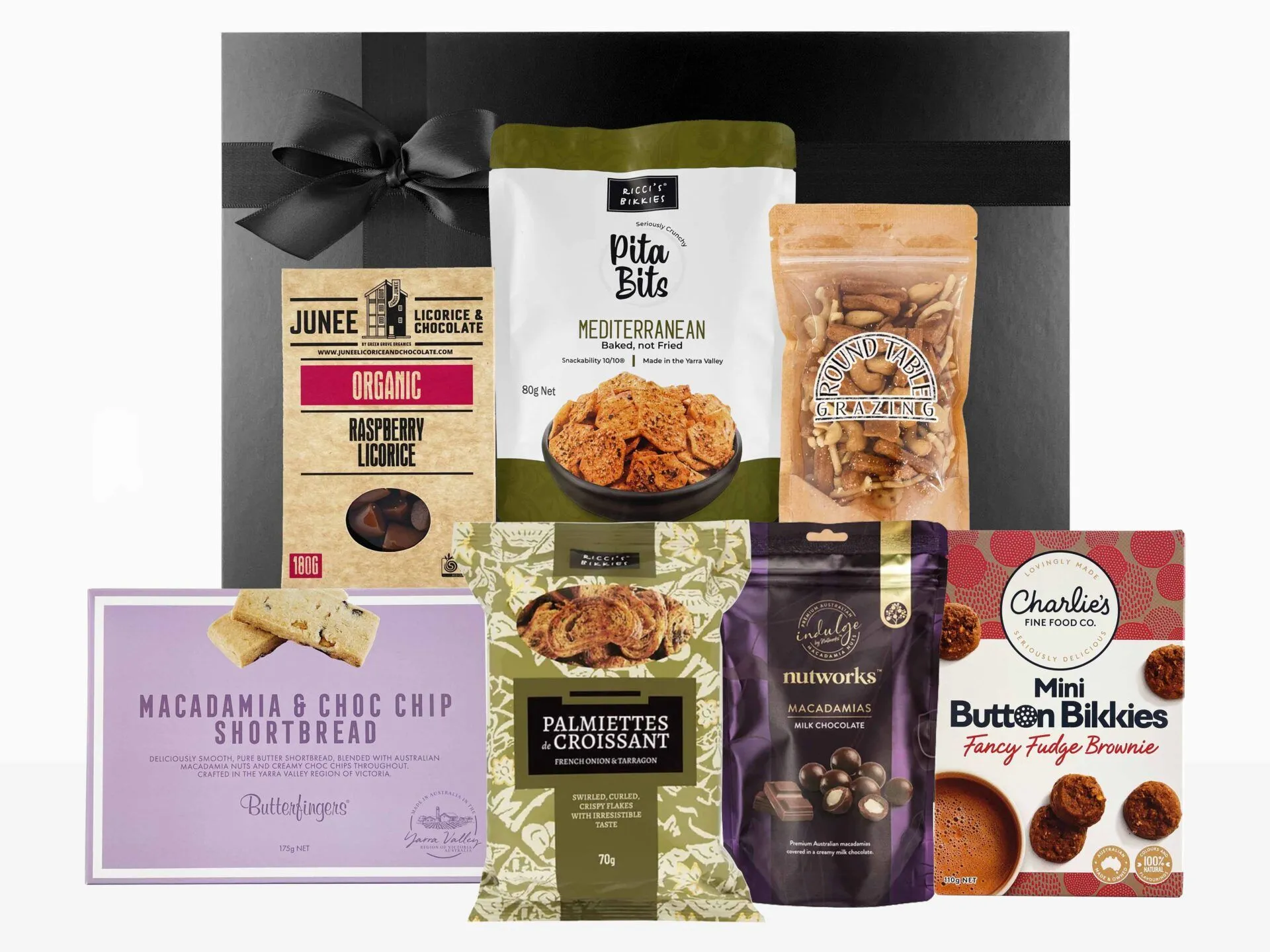 The Gourmet Bites Hamper offers a delicious balance of indulgent flavours and satisfying textures. Whether you’re gifting a foodie or treating yourself, this collection brings variety, quality, and enjoyment to every bite.