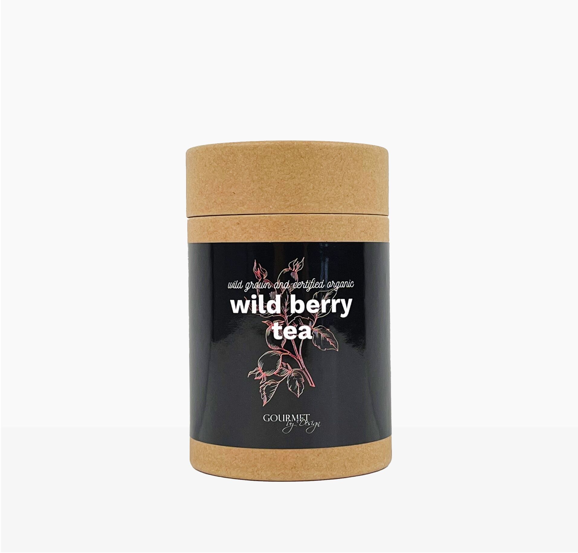 Gourmet By Design Organic Wild Berry Tea Bags. This delicious tea contains Hibiscus, Apple Pieces, Rosehip Shells, Ginger Root, Berry Contains 15 Pyramid Tea Bags