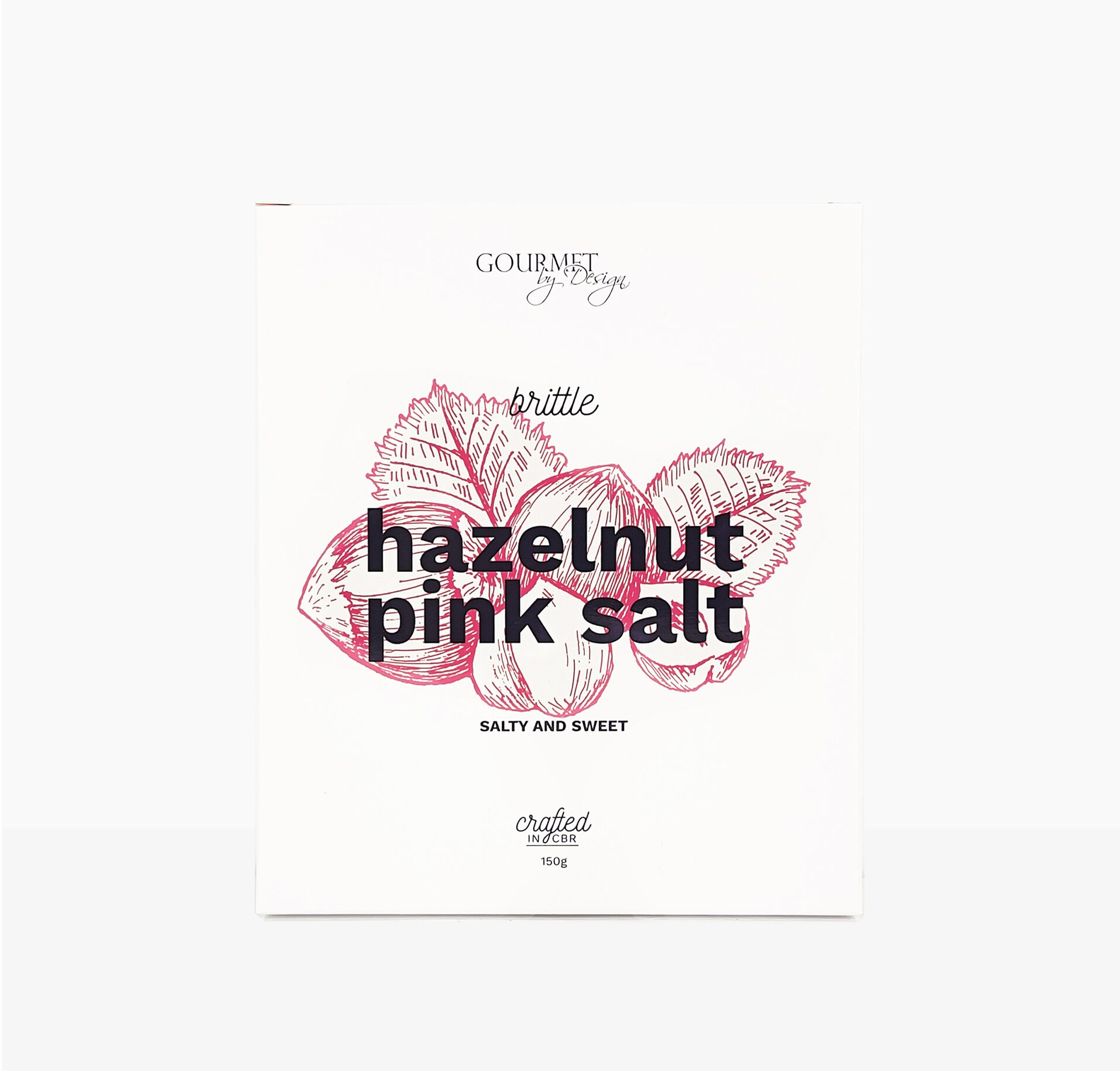 Gourmet by Design Salted Hazelnut Brittle. Using all natural ingredients, including freshly roasted hazelnuts, this delicious salted brittle is highly addictive. Traditionally handmade in small batches in copper pots. No corn or glucose syrup!