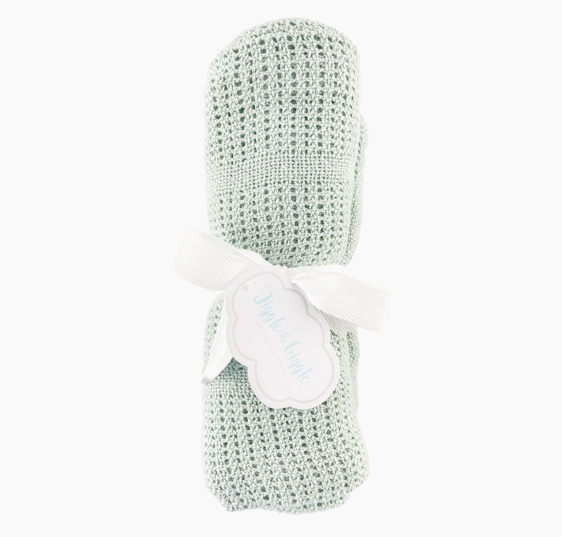 Green Cotton Cellular Blanket. Lightweight and breathable, these gorgeous 100% cotton blankets are perfect to use in the cot or pram to keep baby feeling warm and cosy during their naps. Features tight weaves that won’t snag little fingers.
