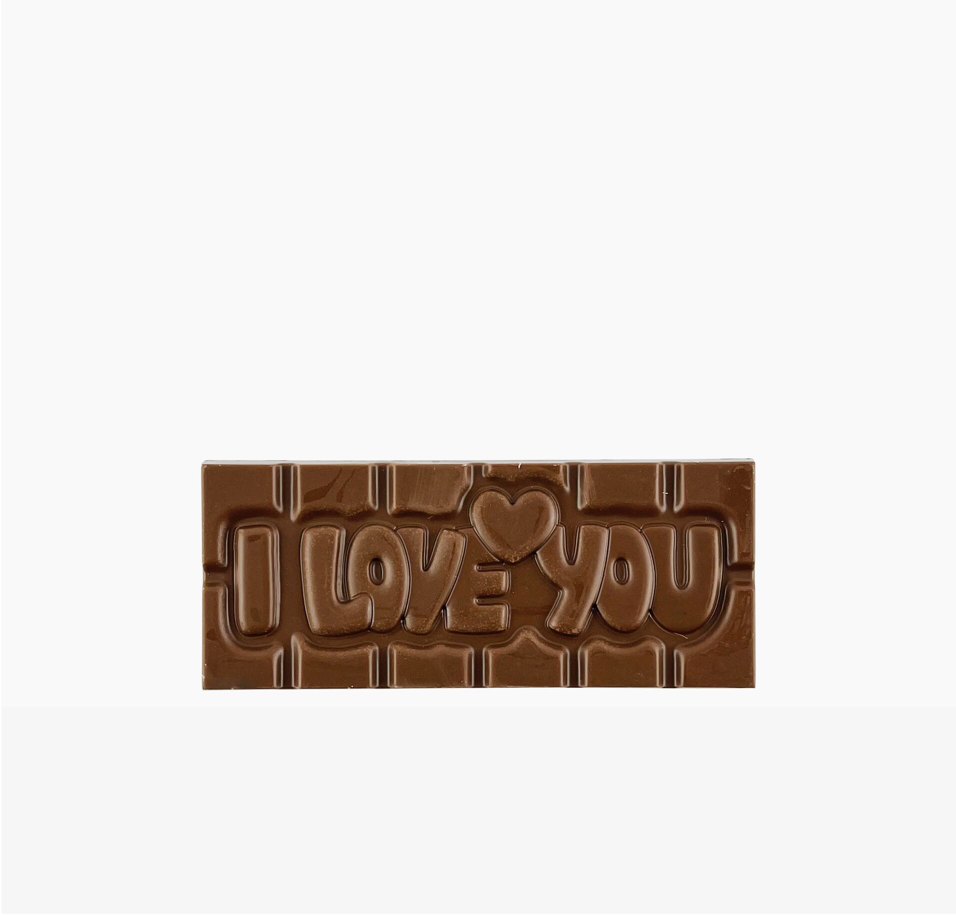 I love you milk chocolate bar made with Belgian Couverture Milk Chocolate. 40g