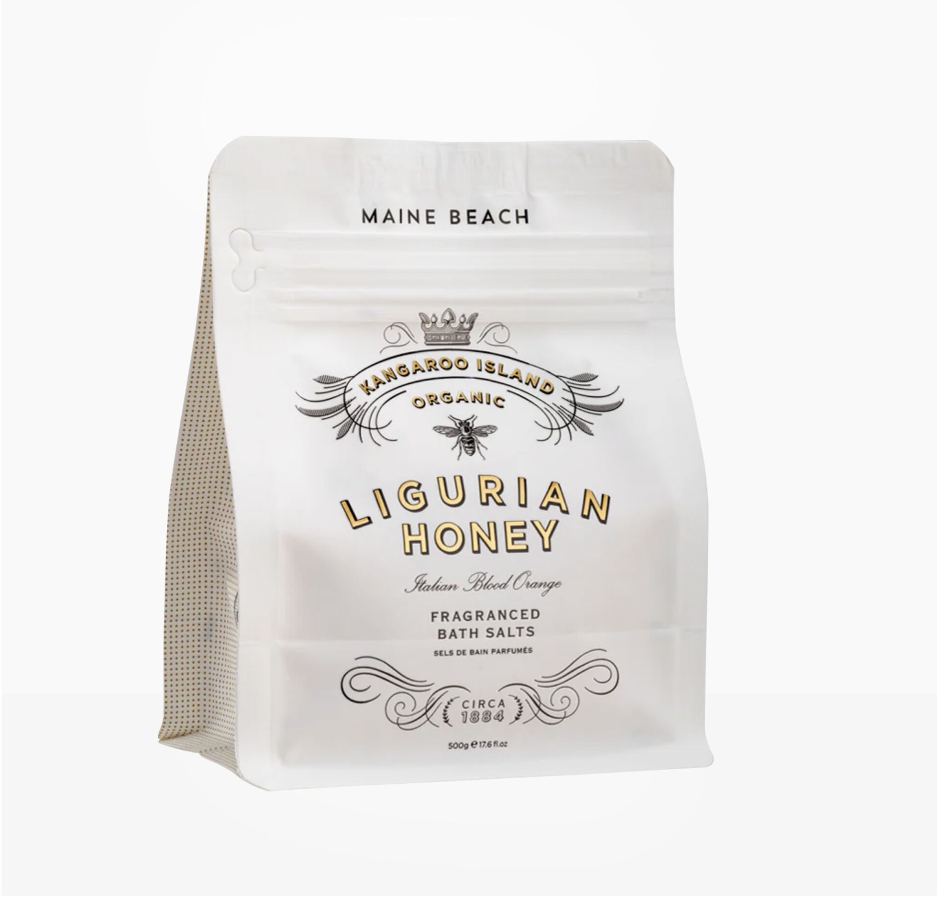 The Ligurian Honey Bath Salts Pouch from Maine Beach is a convenient refill for continued indulgence. Infused with mineral-rich salts and the gentle sweetness of Ligurian Honey, it helps relax tired muscles while nourishing and softening skin. The subtle aroma creates a calming, spa-like experience at home. Designed for sustainability, the refill pouch reduces packaging waste while keeping your bath luxurious. Perfect for topping up your jar or gifting, it ensures daily baths remain restorative and indulgent. Each soak supports relaxation, skin health, and mental calm, turning ordinary baths into spa-like rituals.