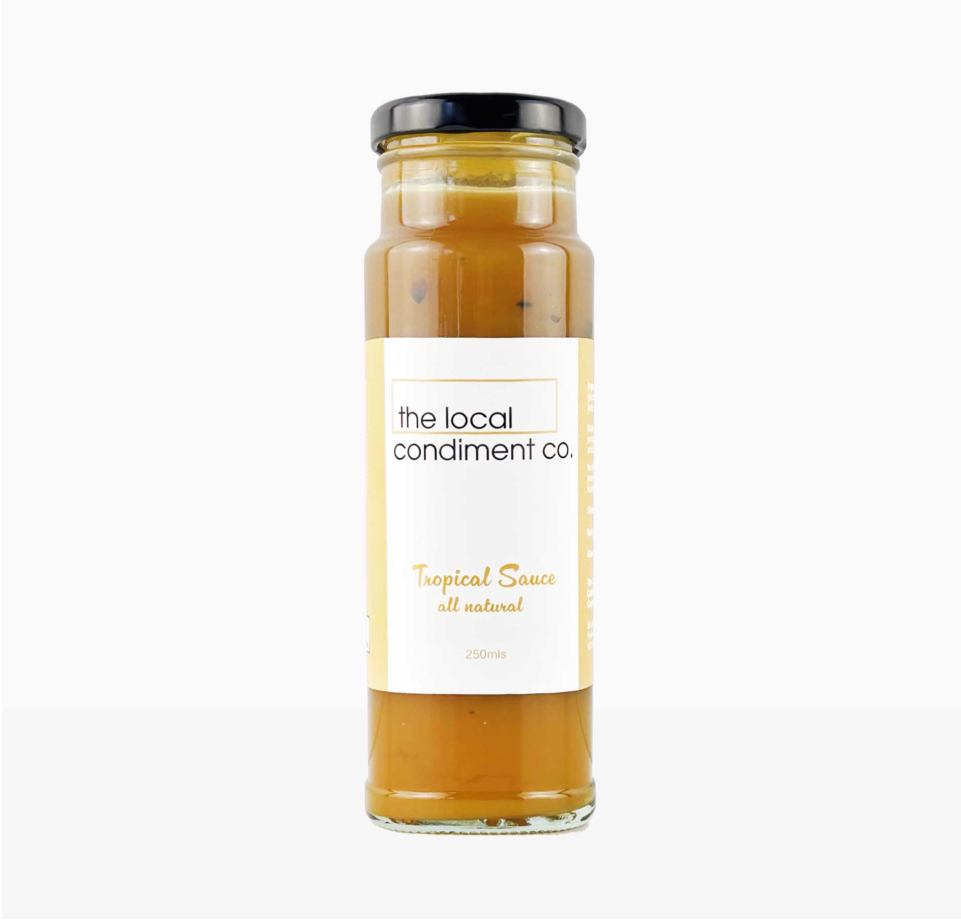 Local Condiment Co. Tropical Sauce. A delicious blend of pineapple, mango & passionfruit. Versatile for summer salads or delicious in smoothies and over ice cream.