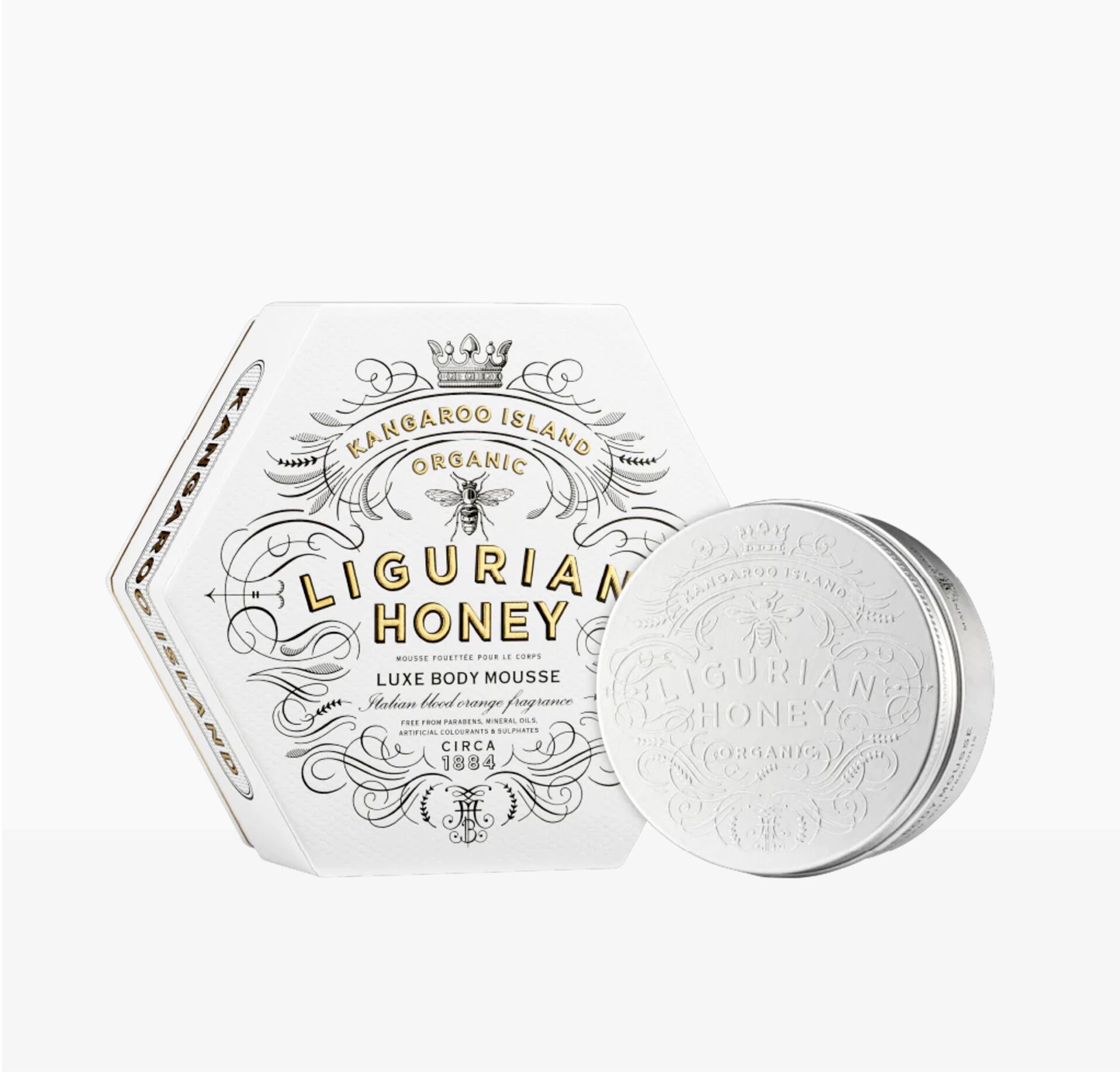 Maine Beach Ligurian Honey Luxe Body Mousse is a luscious mousse enriched with a sumptuous formulation of Kangaroo Island Organic Ligurian Honey and propolis to help protect, moisturise and soften skin. Rich, thick texture adds to the luxury of this body mousse which can be massaged into dry areas like elbows and heels. Fresh uplifting fruit-driven scents of Italian blood orange rise from the sweet mellow, subtle heart of sweet honey and white flowers on a base infused with complex vanilla. 150ml