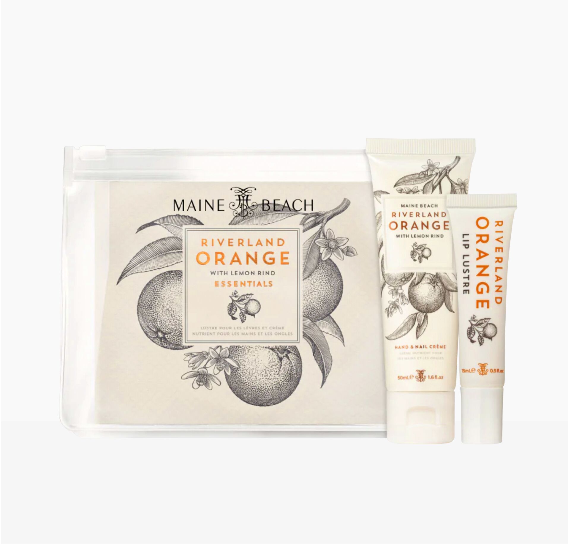 Maine Beach Riverland Orange Essentials Pack – Great for gift giving or for travel. A luscious Lip Lustre to moisturise lips, enriched with capsicum extract to help plump. Pack also includes a rich 50ml Hand & Nail Créme to keep hands soft and pampered with a delicate fragrance. A rich citrus fragrance with uplifting accents of grapefruit and Italian lemon zest rising from a heart of fresh juicy orange oil and mandarin with a whisper of white lily and exotic ylang ylang.