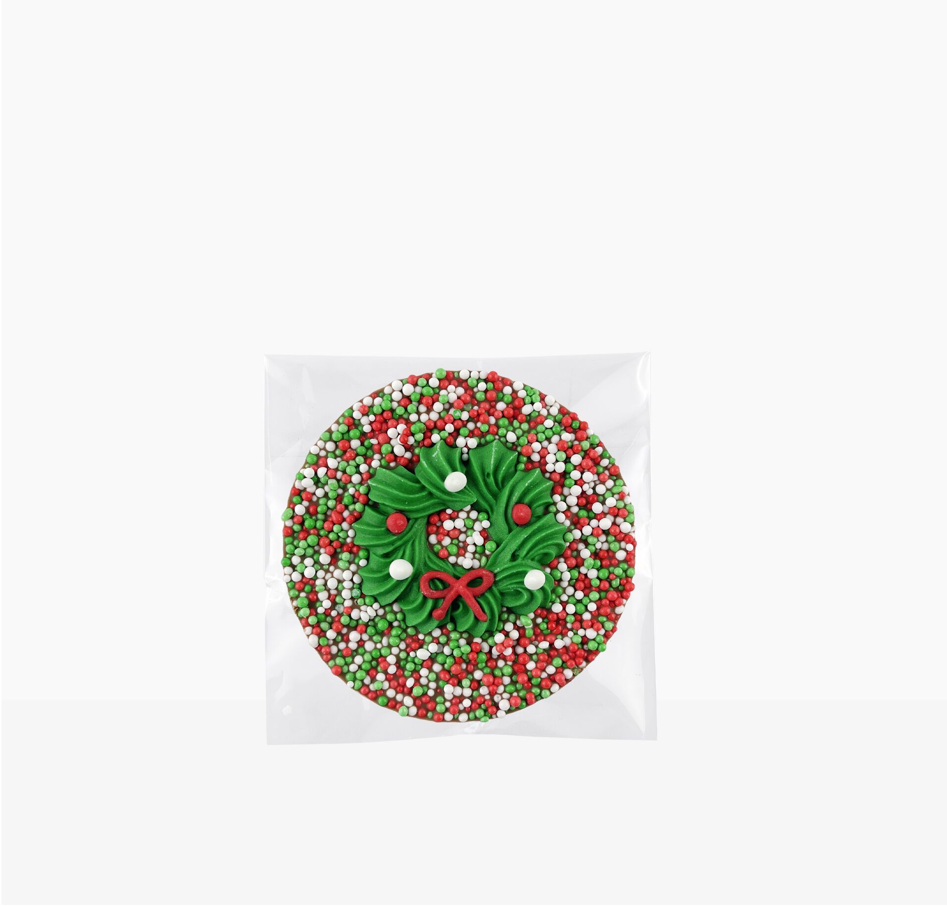The Milk Chocolate Christmas Wreath Freckle from Gourmet by Design is a small yet festive delight. Made with smooth milk chocolate and topped with bright sprinkles, it captures the spirit of the season in a perfectly sized treat. Ideal for one person, it makes a charming addition to Christmas hampers, gift bags, or table settings. Its cheerful design and creamy flavour bring instant joy, while its size makes it perfect for stockings or thoughtful surprises. Whether enjoyed as a personal indulgence or gifted to a loved one, this wreath freckle delivers festive magic in every bite.