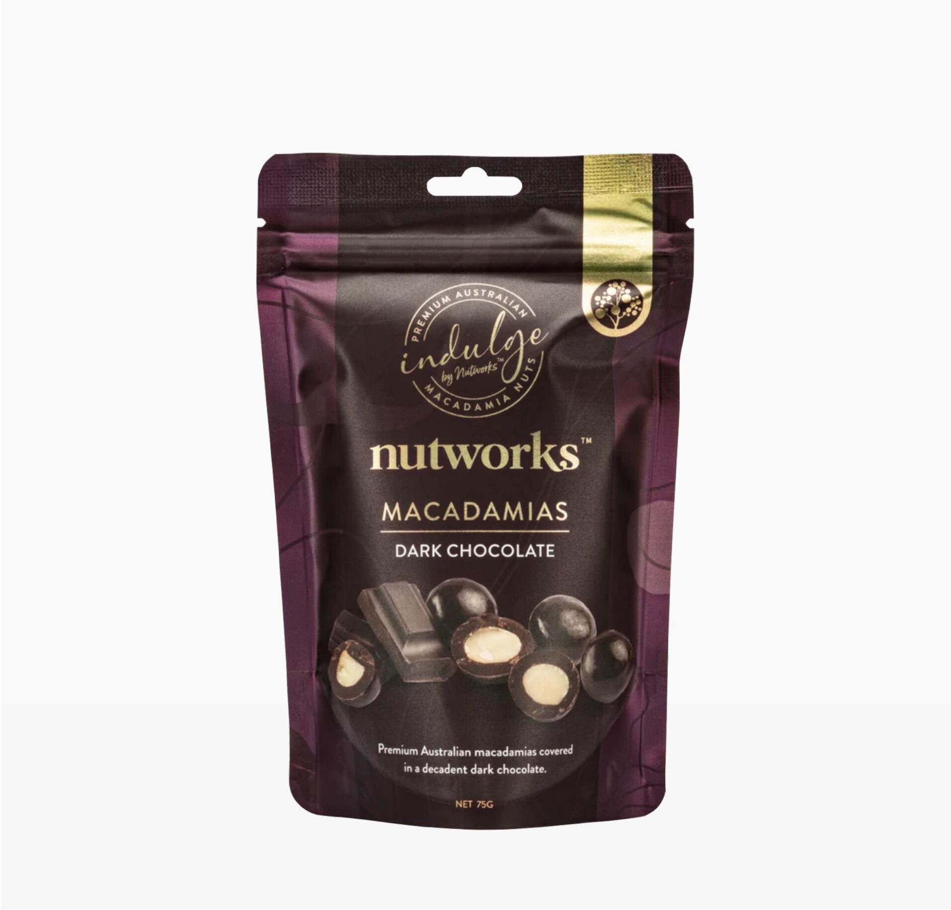 Nutworks Dark Chocolate Macadamias are dry roasted before being covered in premium dark chocolate to create a delicious treat. 75g