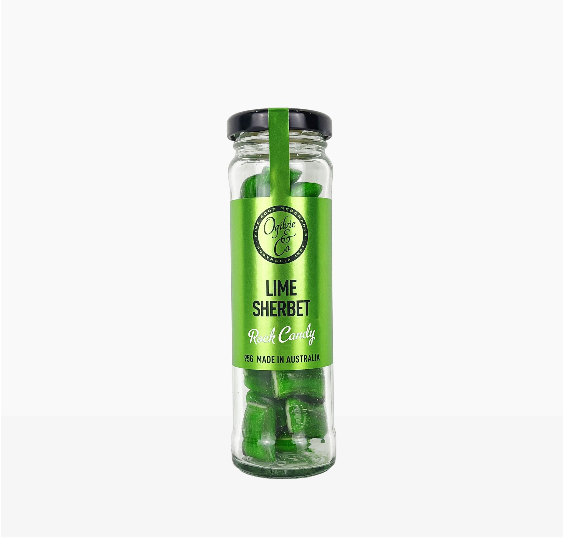 Ogilvie Lime Sherbet Rock. Tangy Lime flavour with a sherbet surprise in the centre. 95g