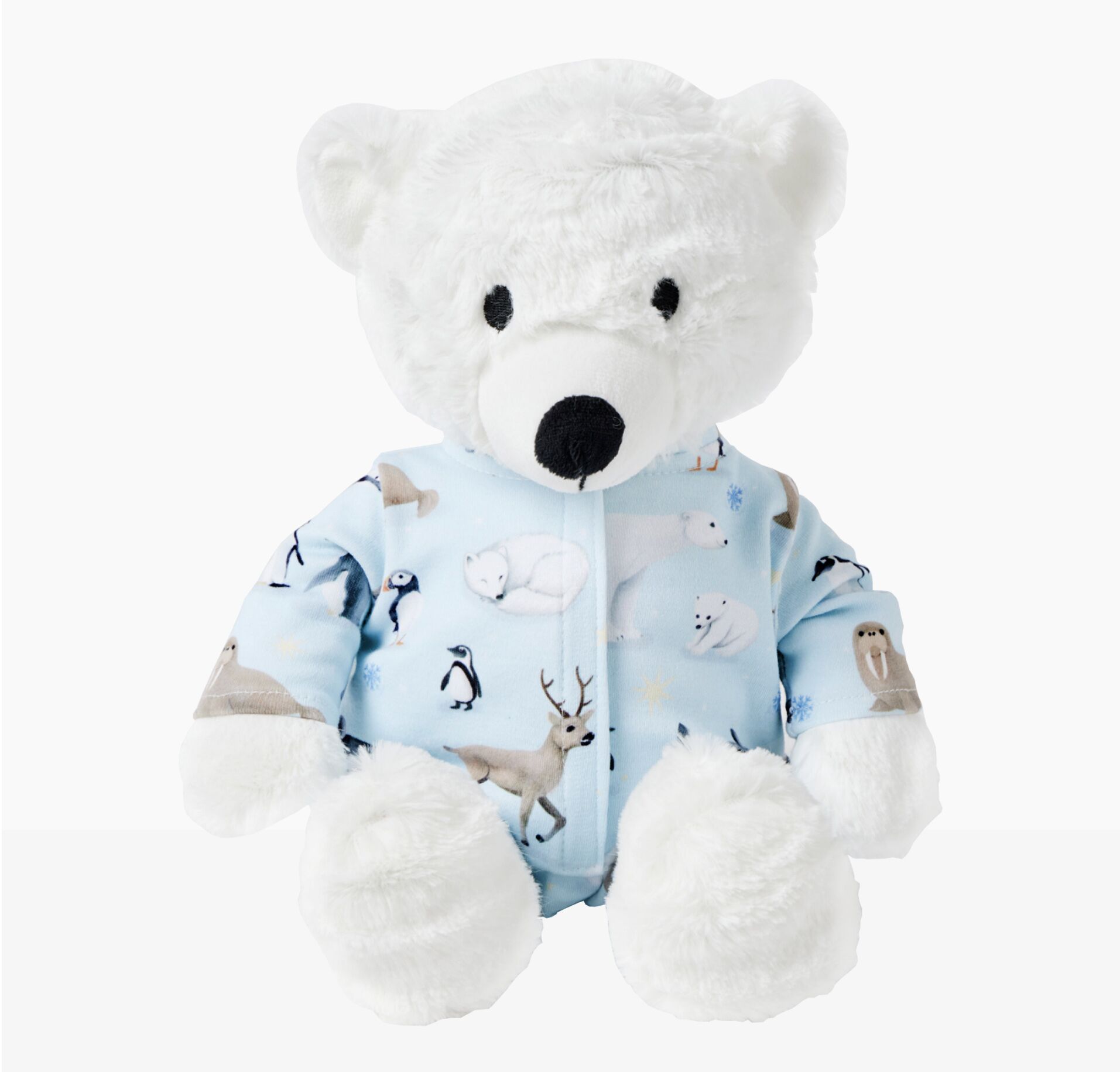 Polar Bear in Pyjamas, an ideal gift for little ones. Designed with adorable fashion in mind, this bear is dressed to impress. Donning a removable romper made of 100% cotton jersey.