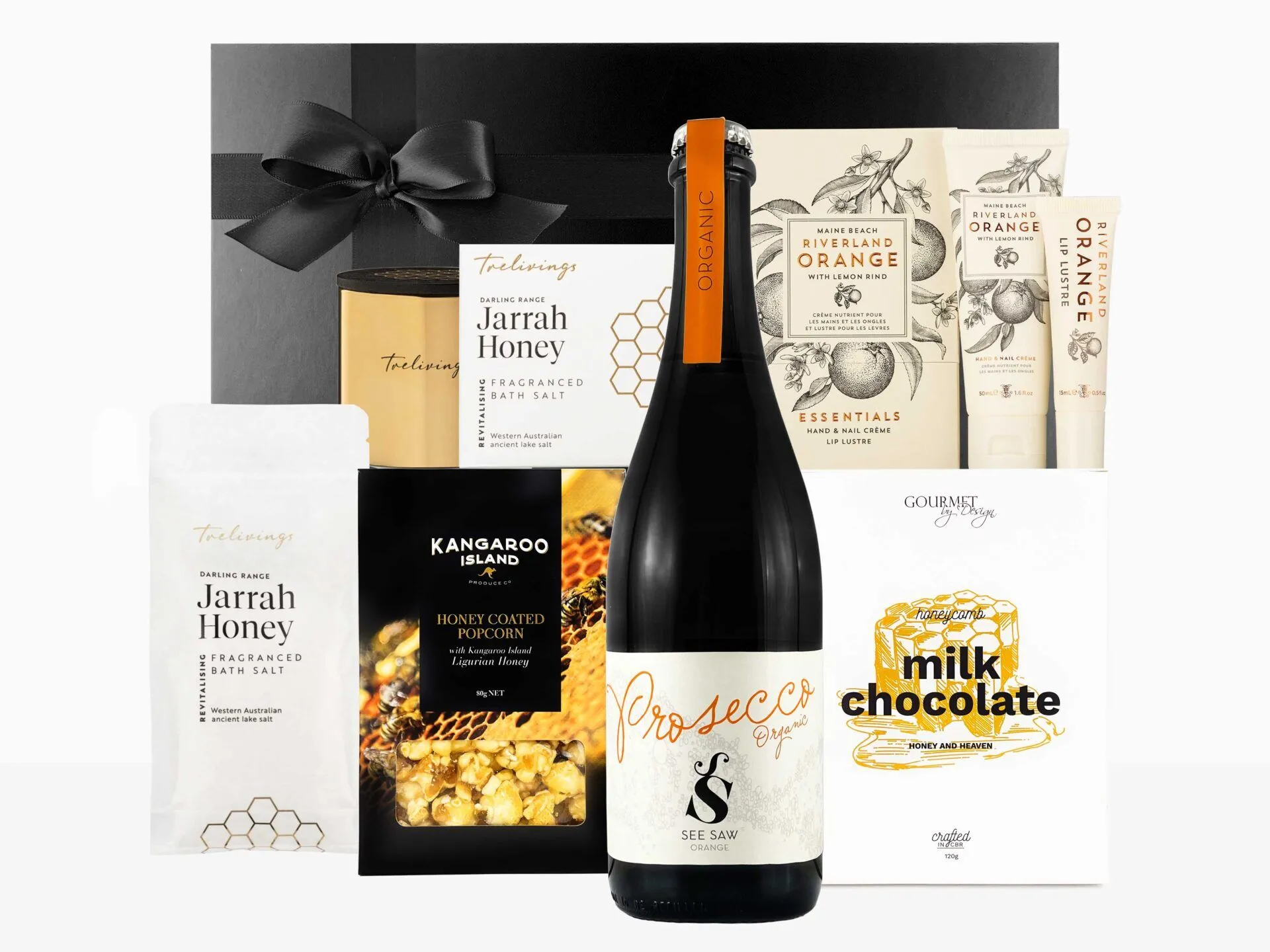 Relax with Prosecco, bright, crisp, sparkling wine with hints of apple and pear. Accompanied by a range of sweet delights from various Australian producers and body care from Maine Beach.