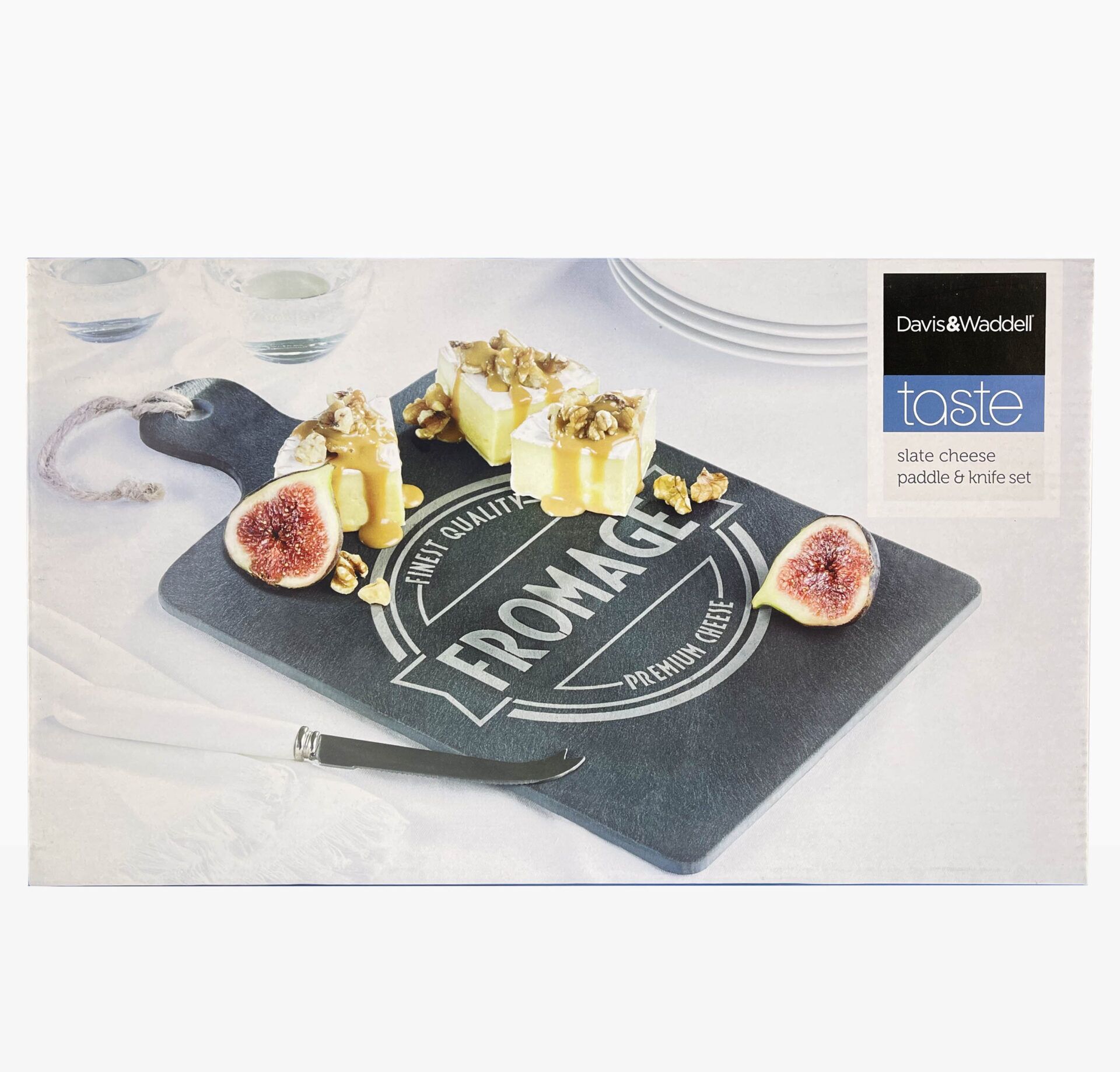 Slate Cheese Paddle & Knife Set by Davis & Waddell. A perfect serving platter for cheese, crackers, fruits, cured meat and other grazing foods.