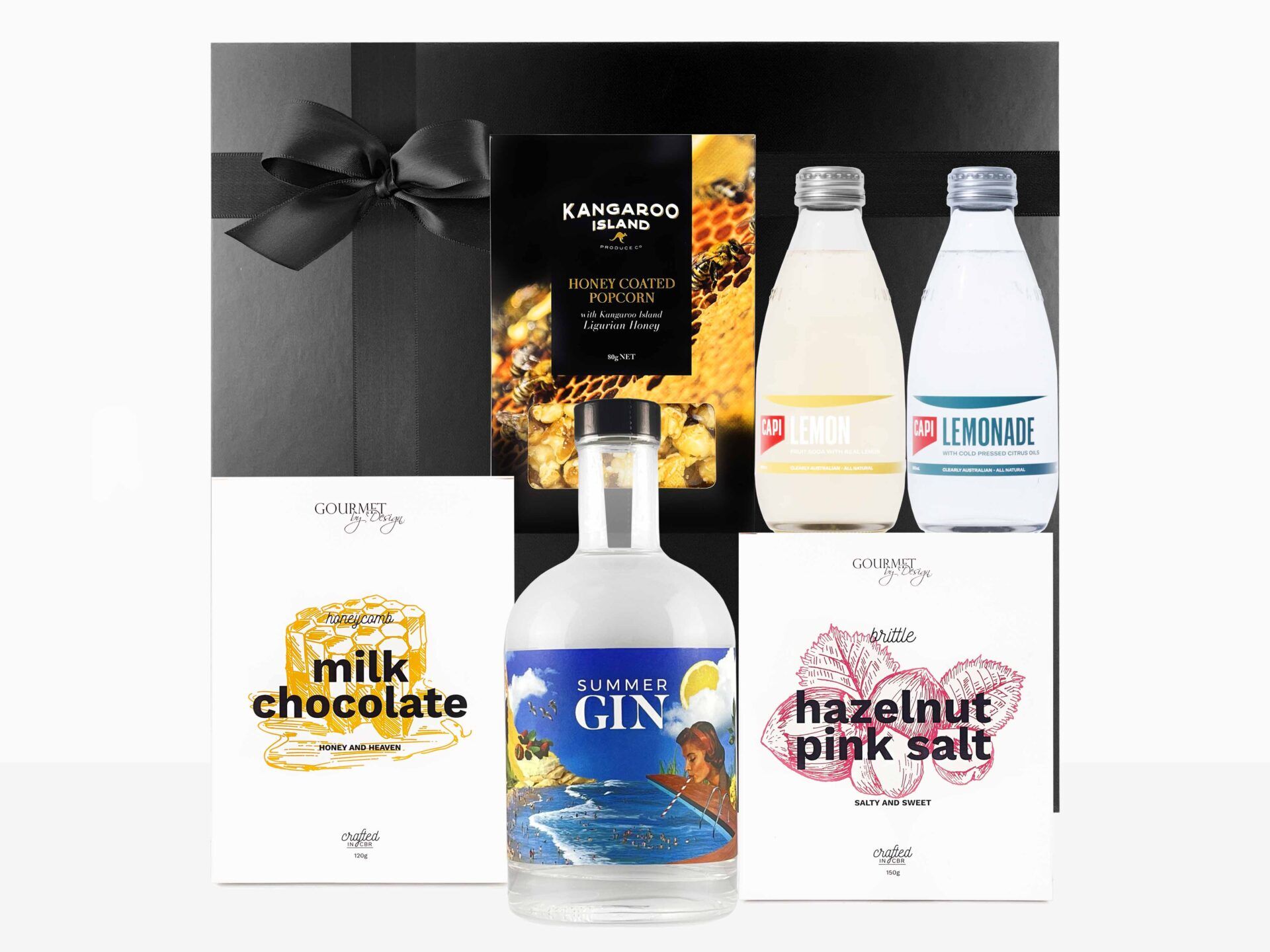 Summer Gin Hamper includes Summer Gin from The Canberra Distillery accompanied by Capi mixes and an assortment of Gourmet goodies.