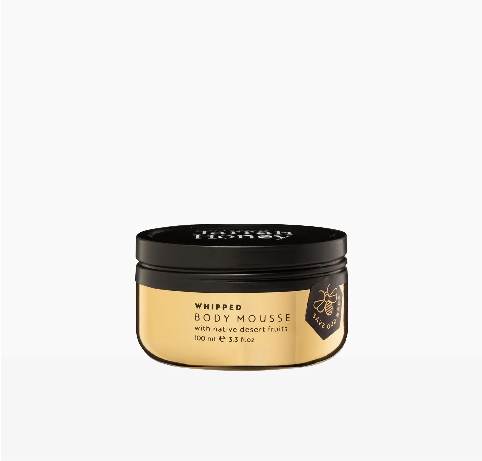 Trelivings Jarrah Honey Whipped Body Mousse is a deeply hydrating, creamy rich body mousse with healing Jarrah Honey sourced from the towering forests of Western Australia & antioxidant rich native desert fruits bursting with vitamin C & E. Massage generously into dry areas. 100 ml. The fragrance is a scent sensation where the springtime flowering of the Jarrah forest burst alive with all their brilliant layering of colour, scents and nectar. 100ml