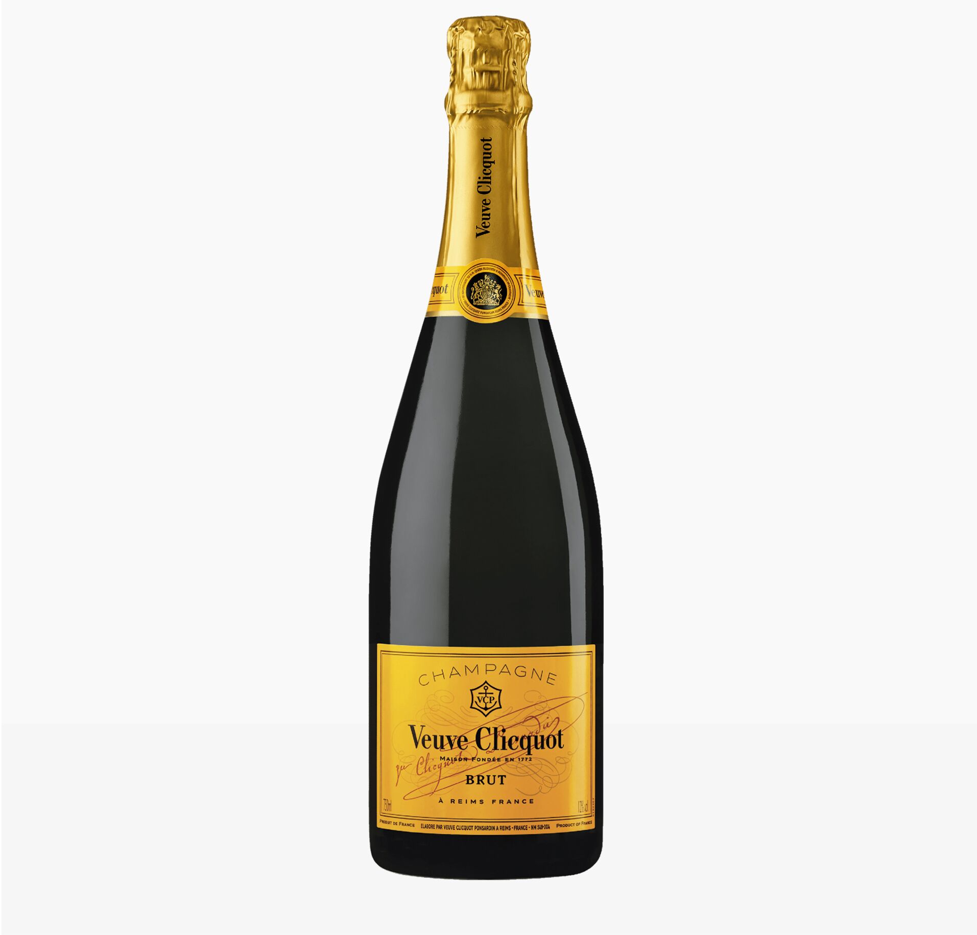 Veuve Clicquot Brut Champagne is the result of a blending of grapes from as many as 50 to 60 different crus and composed of up to 45% reserve wines.
